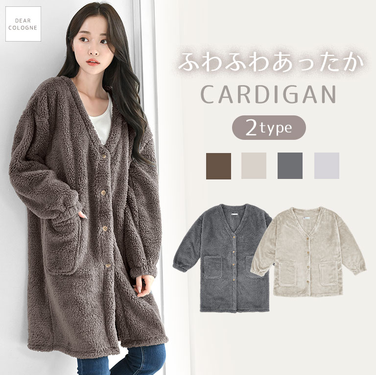 カーディガン もこもこ Vネック ルームウェア ワンピース 前開き 冬 着る毛布 レディース マイクロファイバー ふんわり ボア dw021