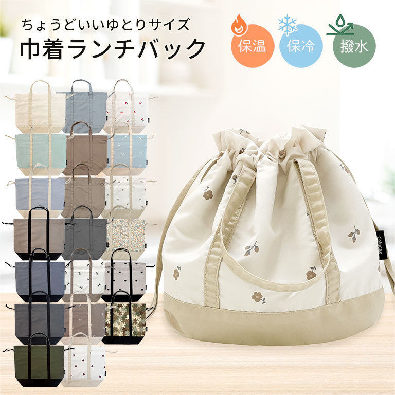 撥水 お弁当袋 ランチバッグ はっ水 巾着袋 保冷バッグ 保冷 保温 持ち手付き おしゃれ 通勤 通学 軽量 お弁当 dz177