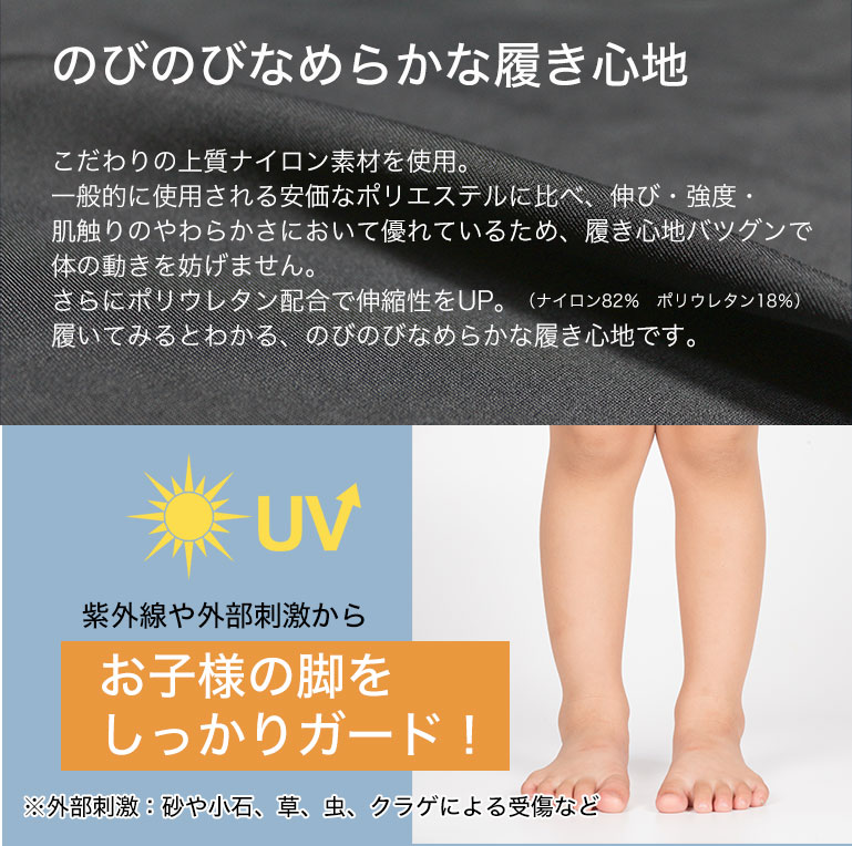 ・こだわりの上質ナイロン素材を使用。のびのび履き心地抜群で活発なお子様の体の動きを妨げません。