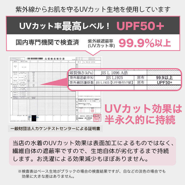 ・水着を痛める塩素に対して強いタイプのポリウレタン糸を配合しています。