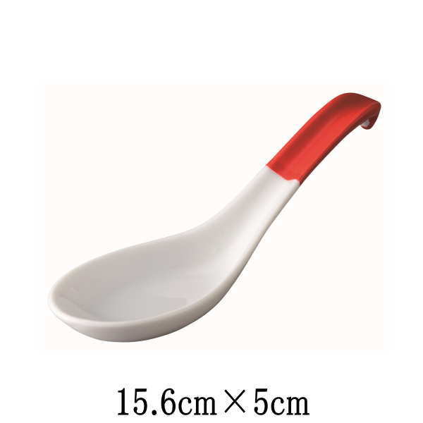 玄曄 カギレンゲL(赤) 白&赤 レンゲスプーンカトラリー 卓上小物雑貨 陶器磁器 おしゃれな業務用食器