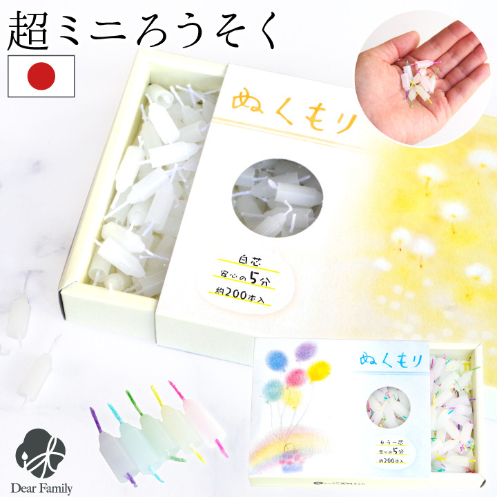 お供え ろうそく 約5分燃焼 ぬくもり 超ミニ寸 国産 約2cm 200本入 白芯 カラー芯 ネコポス対応
