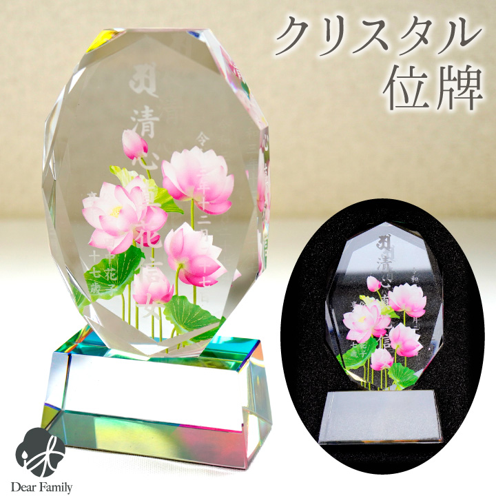 位牌 クリスタル こころ 両面タイプ 名入れ無料 彫刻無料 蓮 クリスタル位牌 モダン おしゃれ