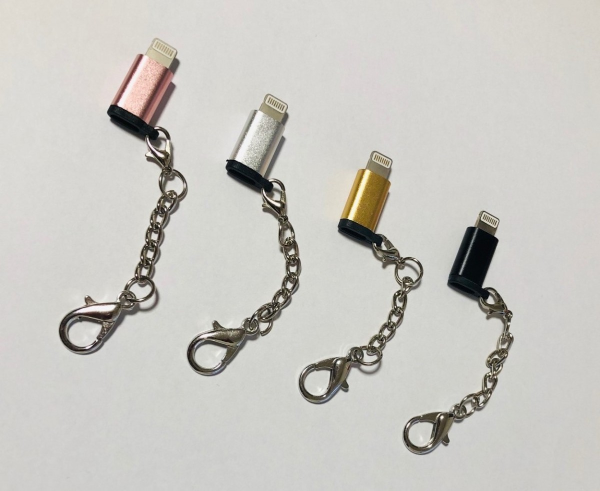 microUSB変換アダプタ iPhone用 Lightning変換 カラー4色 チェーン付き プレゼント