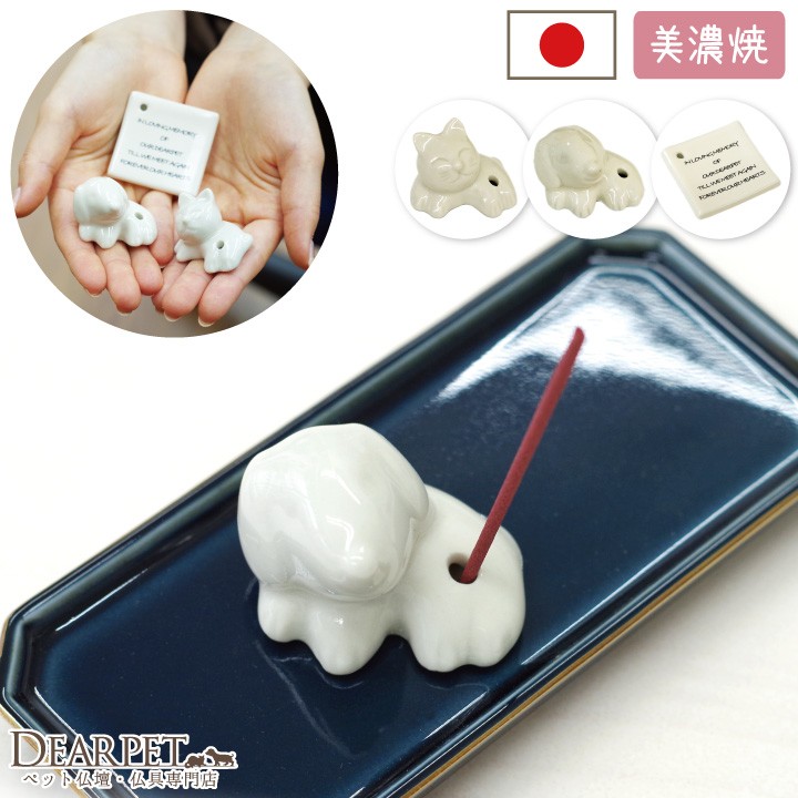 可愛い犬、猫の形をした香立てと、どんなペットちゃんの供養にも使えるメッセージプレートタイプ(祈り)の香立てです。お好みの1つをお選びください。