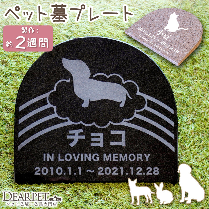 ペット墓 プレート 虹のアーチ 御影石 黒 さくら 選べる 字体 シルエット 名入れ無料 墓石 ペットのお墓 かわいい おしゃれ