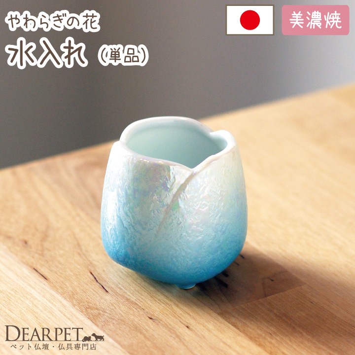 ペット仏具 水入れ やわらぎの花 ラスターブルー メモリアル