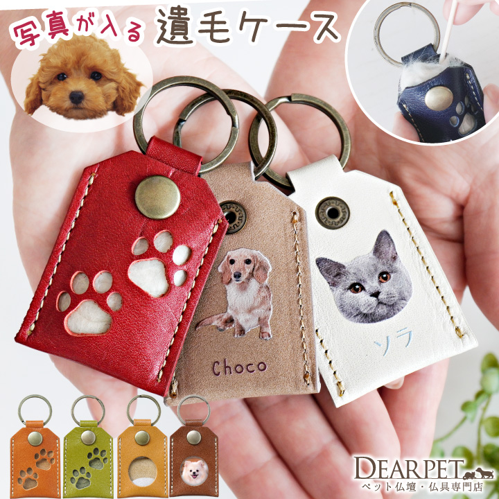 ペット 遺毛入れ 毛 ケース 刻印 写真 名入れ 本革 レザー 国産 足あと 肉球 丸 キーホルダー ネコポス送料無料