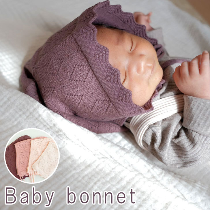 ニット ボンネット 帽子 ベビー 赤ちゃん 女の子 男の子 ユニセックス コットン かわいい おしゃれ シンプル出産祝い お宮参り お七夜 子供服 お出かけ