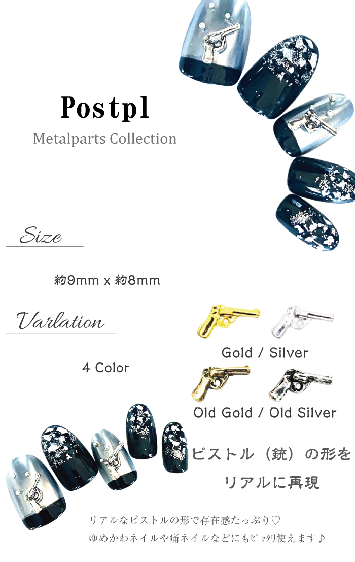 ピストルメタルパーツ 5個入り 拳銃 ネイルパーツ ジェルネイル ネイル ジェル パーツ