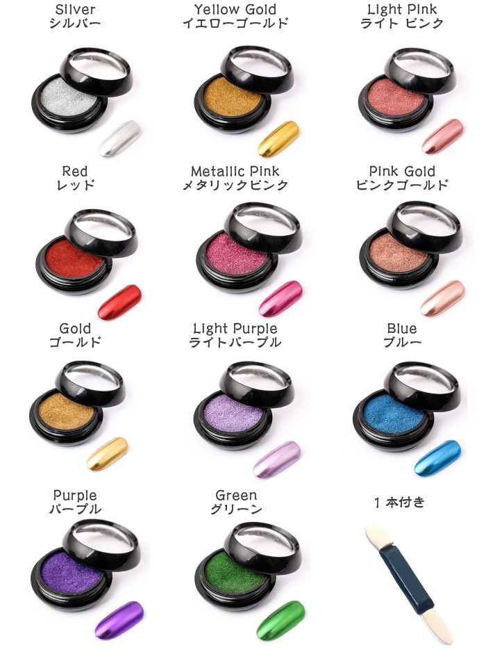 カラーミラーパウダー チップ1個付き 11種類 ジェルネイル ネイルパウダー ミラーネイル ネイルアート
