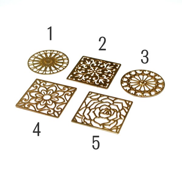 高品質メタルパーツ 透かしパーツ ステンドグラス柄5種類 とても薄い高品質な銅製です!