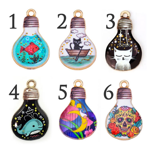 かわいいアンティークチャームの中から『6種類の電球 ネコと金魚とクジラと妖精と髑髏』です!