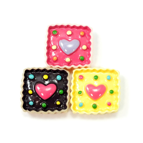 ハート絵柄の四角いタルト 3色セット★スイーツデコ チョコレート・ベリー・クリーム ケーキ