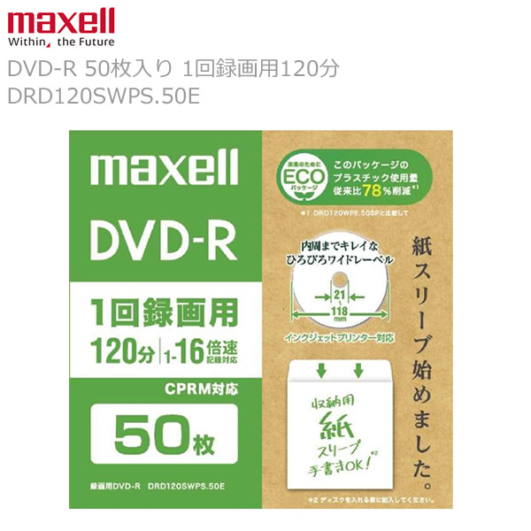 maxell マクセル DVD-R DRD120SWPS.50E 1パック50枚入り 1回録画用 CPRM対応 1-16倍速 ひろびろ白レーベル 無地 120分[宅配便][送料無料]