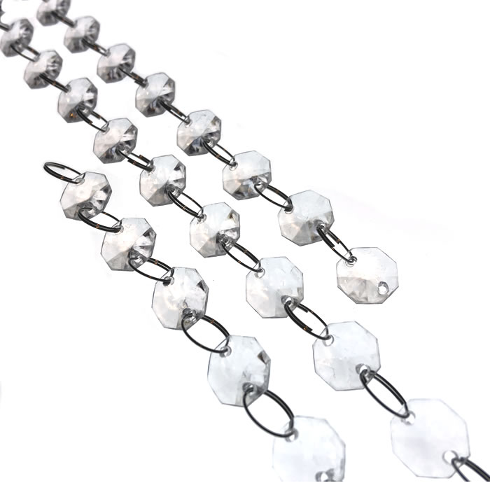 アクリル製オクタゴン14mm クリスタルチェーン1m クリア|軽量・割れにくいクリスタル調装飾/舞台・店舗ディスプレイ用
