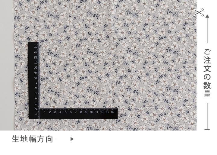 | オーダーカット販売 生地幅×10cm単位(ご注文数量1=10cm) 必ず50cm(数量5)以上でご注文下さい(売切れの場合は除きます) 例)「数量5」でご注文→生地幅×50cmの生地 「数量23」でご注文→生地幅×230cmの生地 |