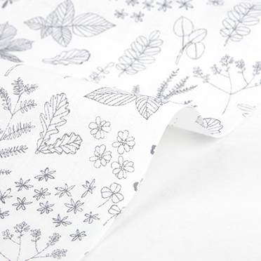 スタイリッシュとナチュラル、相反する2つのイメージをミックスしたNATUREシリーズ。こちらの生地は「leaf(リーフ)」、白地にグレーで描かれた繊細な植物模様が上品で、幅広い世代に好まれるデザインです。幅が148cmあるワイドタイプなので、たっぷりお使いいただけます。