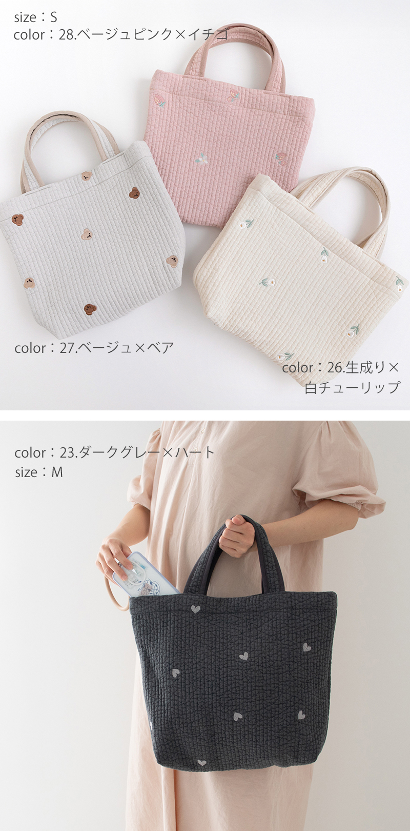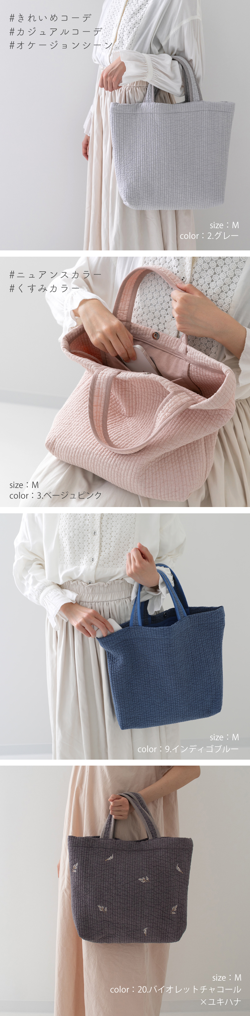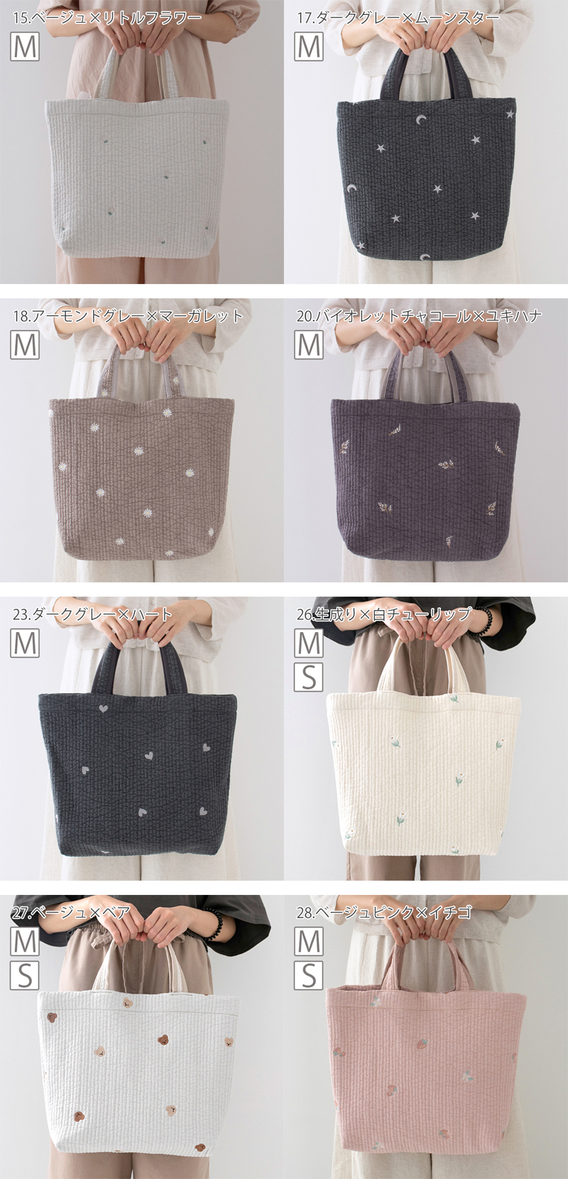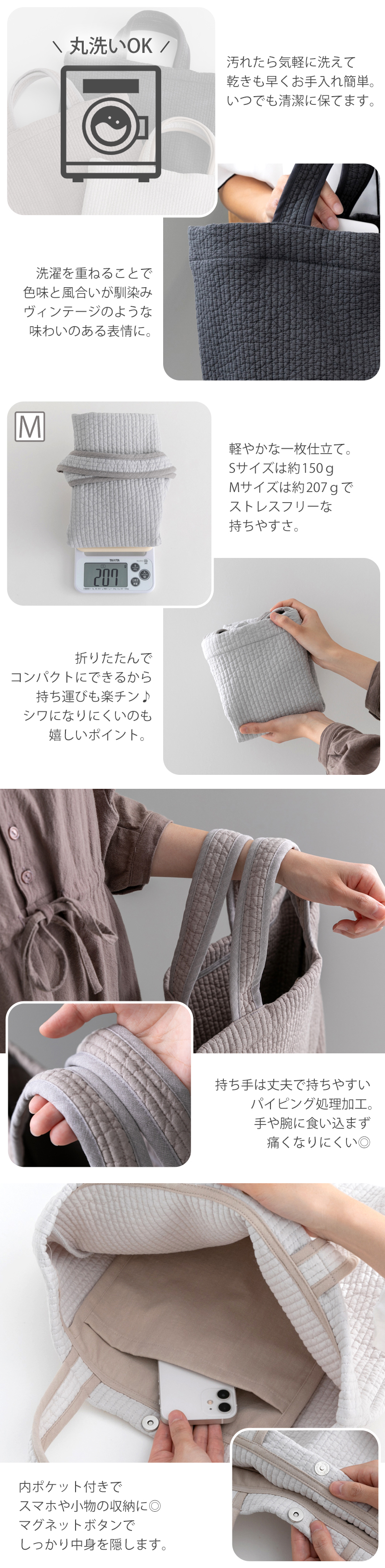 | 【Mサイズ】 幅:約40cm(底幅:約30cm)×高さ:30cm×マチ:10cm 持ち手(長さ) 33cm 内ポケット(長さ) 縦:約17.5cm×横:約20cm 【Sサイズ】 幅:約31cm(底幅:約21cm)×高さ:24cm×マチ:8cm 持ち手(長さ) 31cm 内ポケット 縦:約15cm×横:約17cm 底板:約22.5cm×8cm(厚さ2.5mm) |