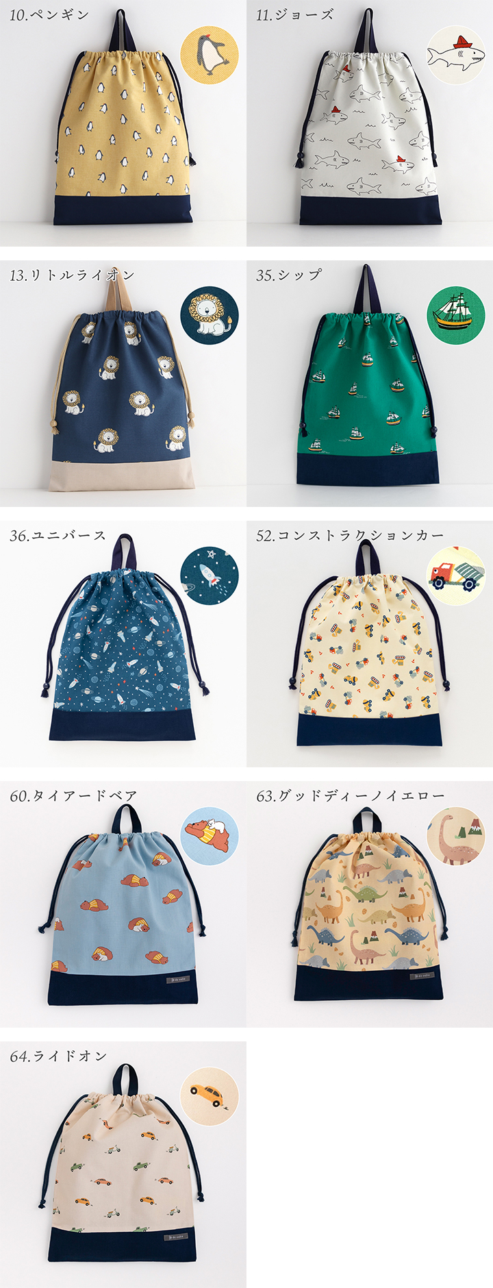 | コットン100%(オックス) ※底布は切り替えデザイン 持ち手(ループ):綾テープ アクリルまたはポリエステル カラーひも:アクリルまたはポリエステル |