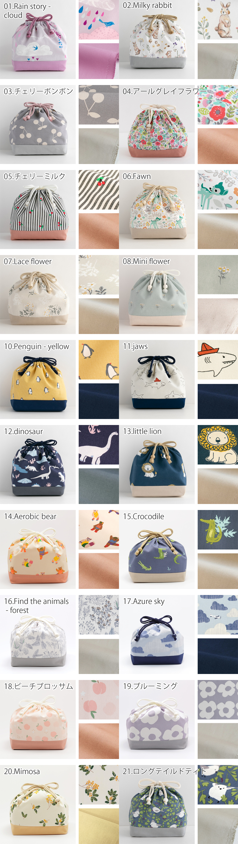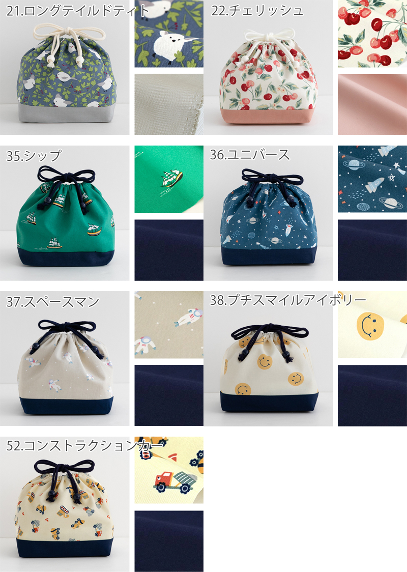 | コットン100%(オックス) ※底布は切り替えデザイン カラーひも:アクリルまたはポリエステル |
