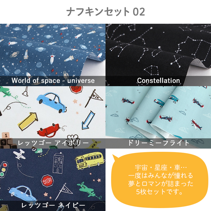 | 縦44cm×横52cm コットン生地5枚 デコレクションズオリジナルナフキンレシピ |