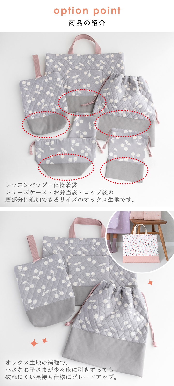 | ※入園入学6点セット『配色ありタイプ』を作るには、別売りの入園入学6点セット手づくりキット(→商品ページへ移動)が必要になります。 |