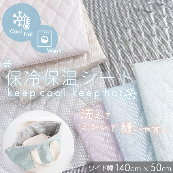 保冷・保温シート 素材:メッシュ生地(ポリエステル100%)、保冷保温シート(保冷温加工ポリウレタン)、不織布(ポリエステル100%)、わた(ポリエステル100%) 生地幅:140cm 厚み:ごく厚い ![]() |