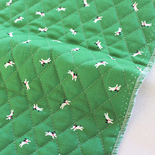 公園に集う様々な人たちをイメージした「 Park(パーク)」シリーズ。こちらの生地は「happy dog(ハッピードッグ)」、芝生のような緑色地に小さな犬が駆け回る北欧タッチのイラストが大人っぽい、おしゃれなキルティング生地です。 小物やバッグ、インテリアなど幅広くお使いいただけます。 |