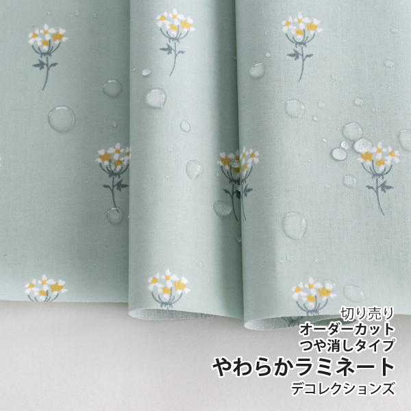 やわらかラミネート生地(つや消しラミネート) 素材:コットン100%(表面ラミネート) 生地幅:106cm(コーティングを施した部分のサイズ) 柄の向き:あり 厚み:普通 ![]() |