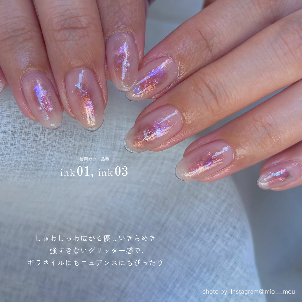 柔らかく広がる発色ときらめきで、滲みやぼかしのニュアンスアートも思いのままに。