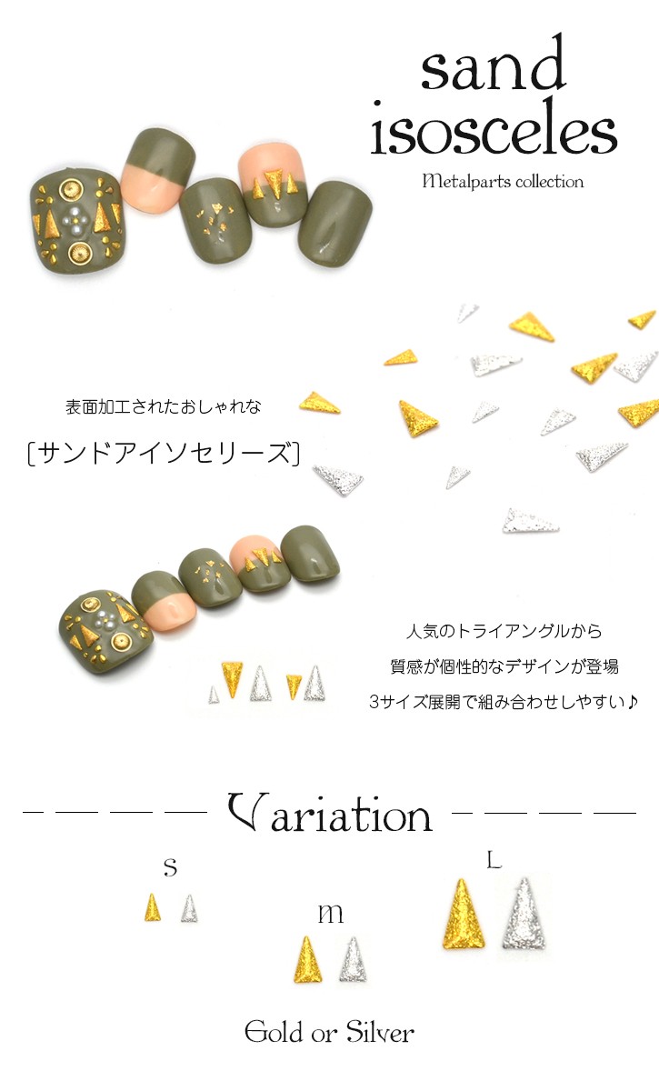[ネコポス送料無料]サンドアイソセリーズ(ゴールド/シルバー)10個入り 3サイズ 二等辺三角形 ネイルパーツ ネイル ジェルネイル