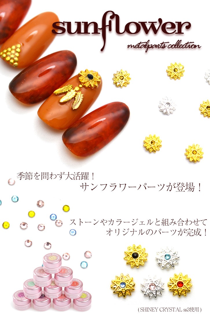 [ネコポス送料無料]サンフラワーパーツ(ゴールド/シルバー)5個入り ネイルアート メタルパーツ エスニック ネイティブ ジェルネイル