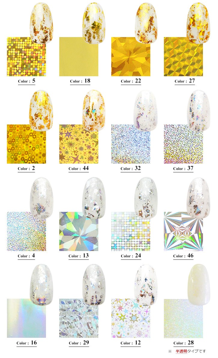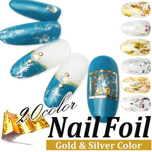 [ネコポス送料無料]選べる20色 ネイルホイル(ゴールド・シルバー) 箔 フォイル ホログラム ジェルネイル