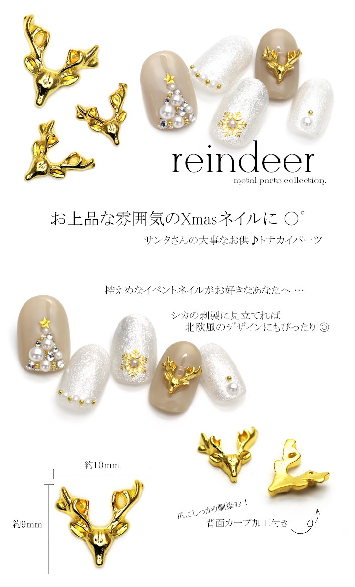 [ネコポス送料無料]メタルパーツ トナカイパーツ [ゴールド/3個入り]セルフネイル ジェルネイル