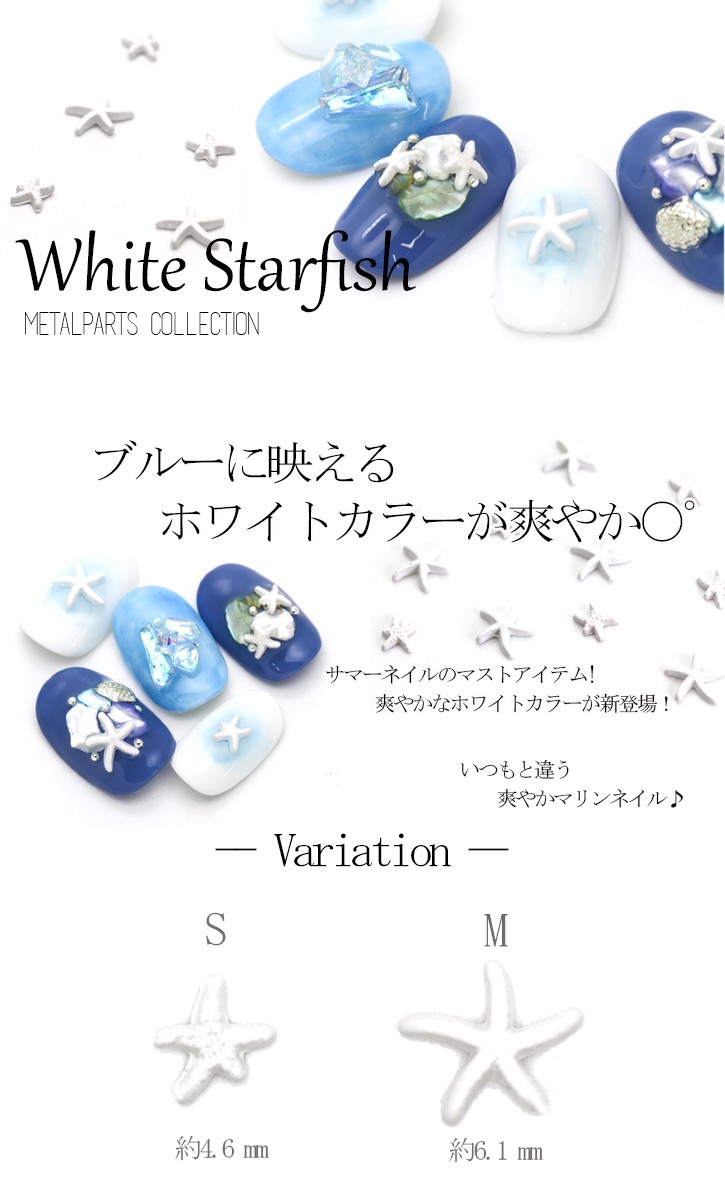 [ネコポス送料無料]メタルパール ホワイトスターフィッシュパーツ ホワイト S/M 5個入 ジェルネイル