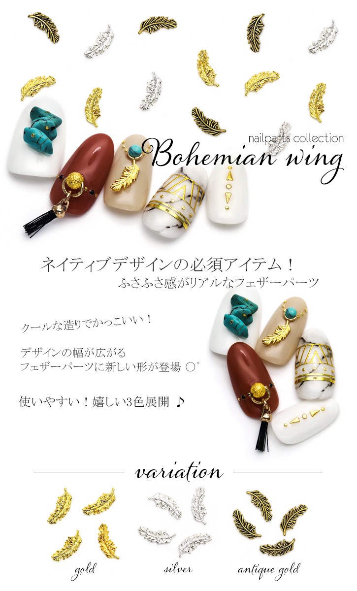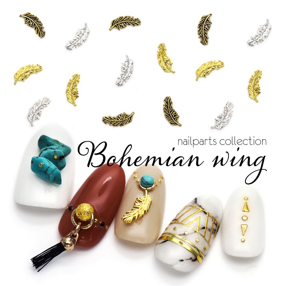 [ネコポス送料無料]ネイルパーツ ボヘミアンウィングパーツ [ゴールド・シルバー・アンティークゴールド/4個入り]セルフネイル ジェルネイル