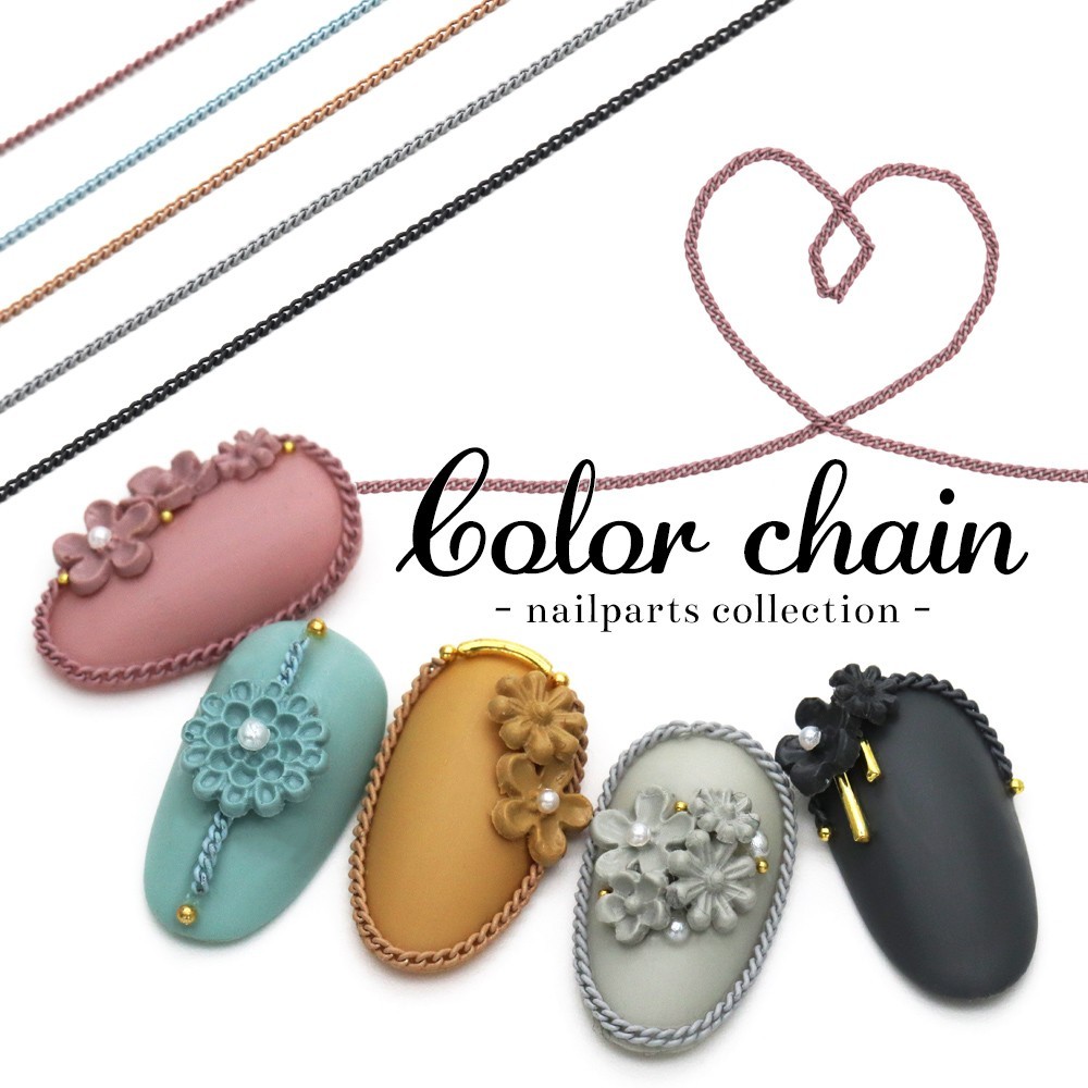 [ネコポス送料無料]ネイルパーツ カラーチェーン [5色/約25cm入り]セルフネイル ジェルネイル