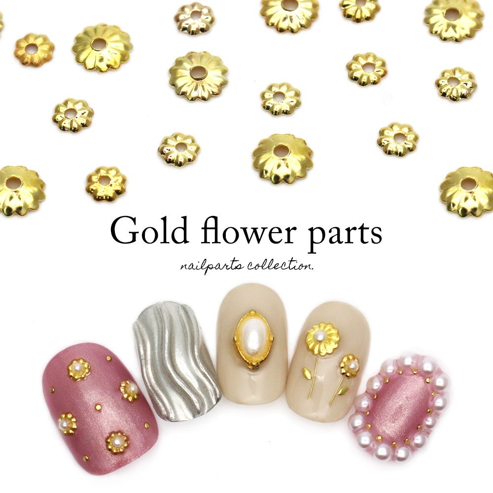 [ネコポス送料無料]ネイルパーツ ゴールドフラワーパーツ Sサイズ約20個入り/Mサイズ約10個入り ジェルネイル