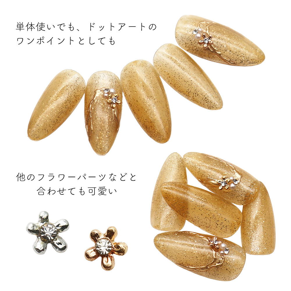小さなストーンが真ん中にちょこんと付いたフラワーパーツ