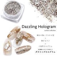 輝きの強いプラチナ箔×細かなラメ×六角形ホログラム