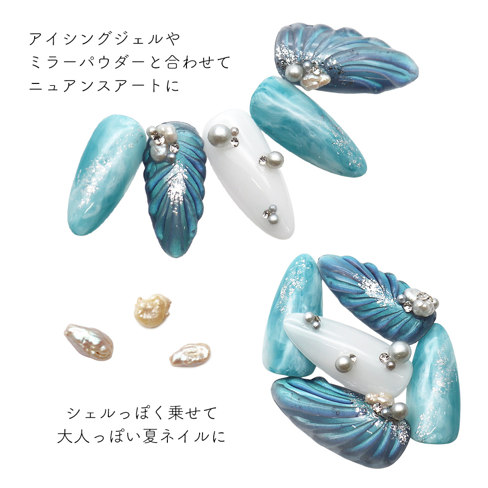 シェルっぽく乗せて大人っぽい夏ネイルにも!