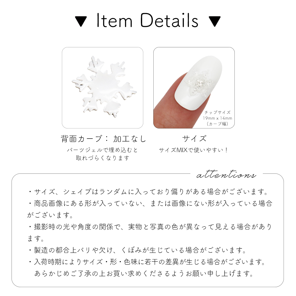大小様々なサイズがMIXされたスノーフレークパーツ