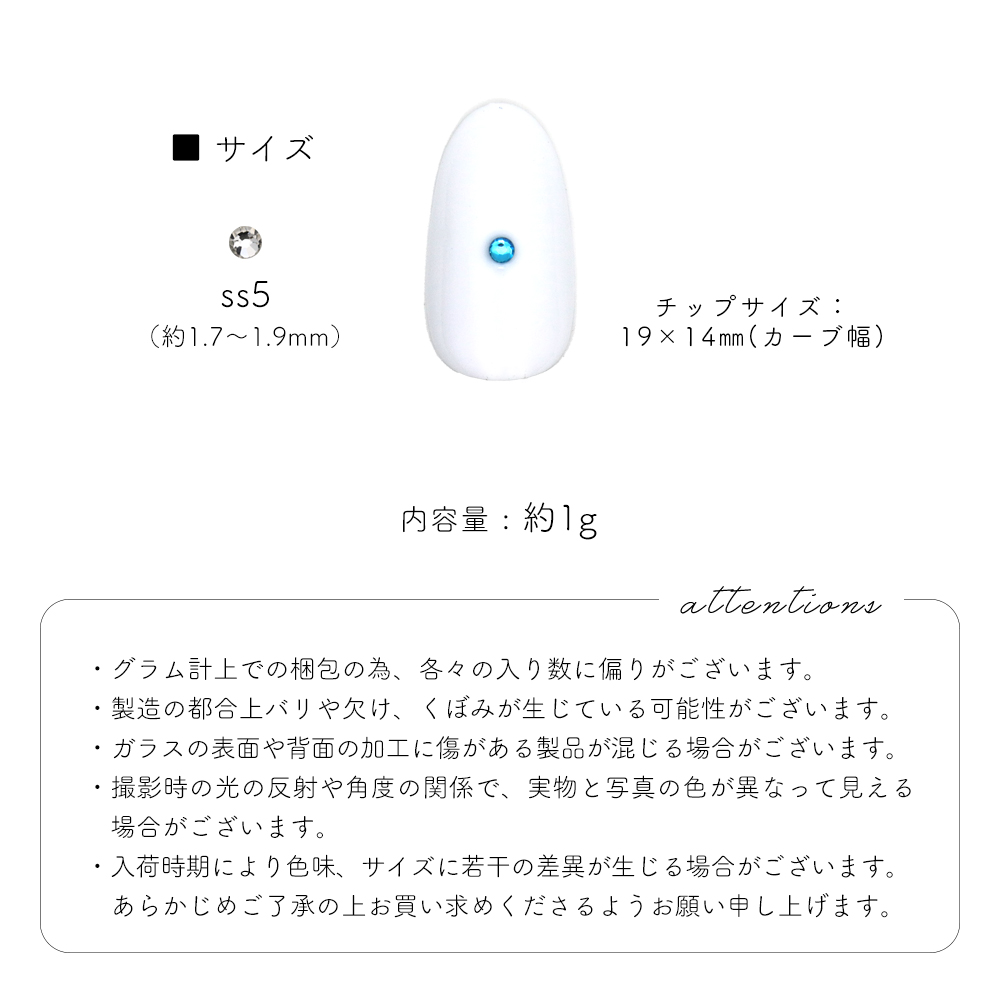 ストーンの大きさ 約1.7mm〜1.9mm(SS5)