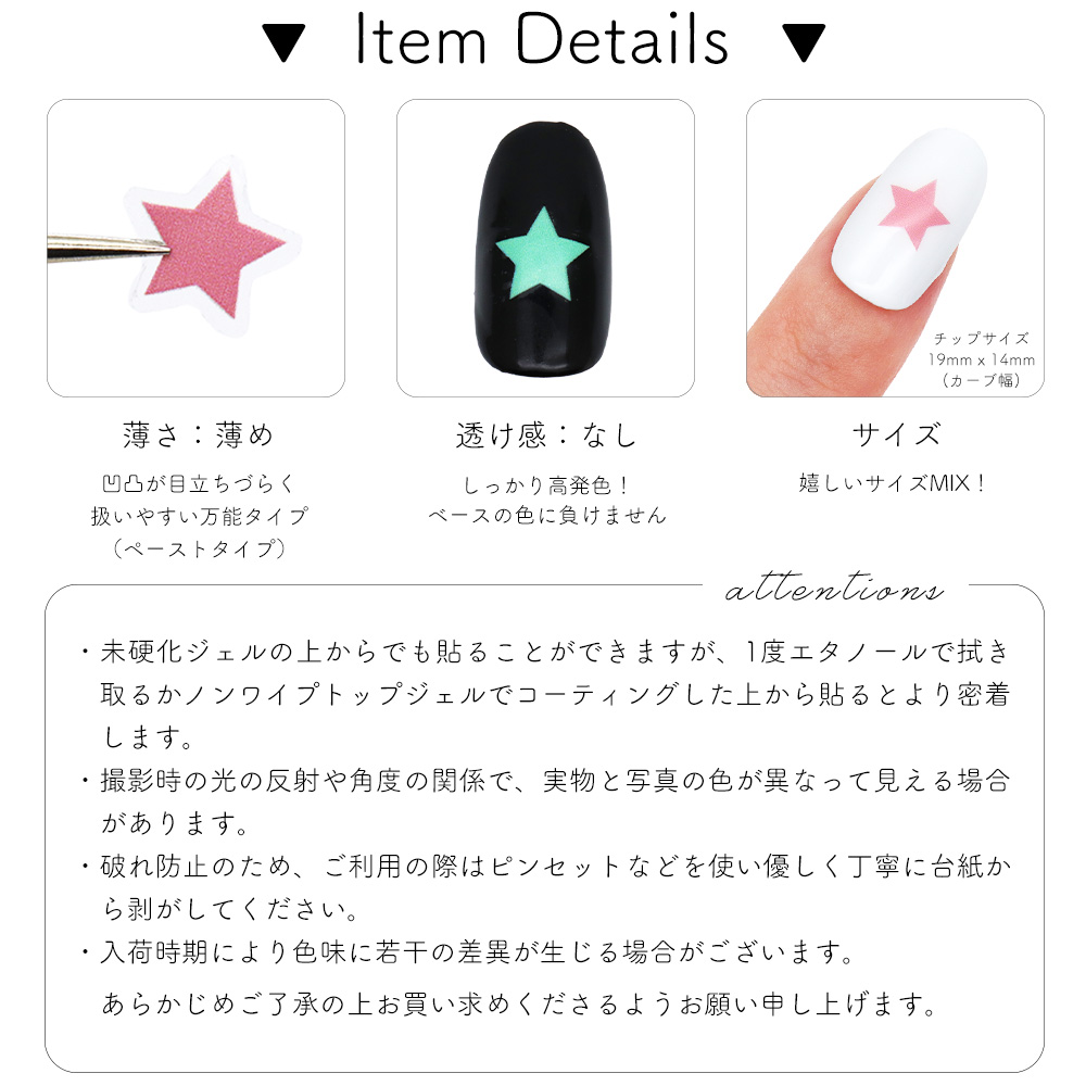 ノンワイプトップジェルでコーティングした上から貼るとより密着します。