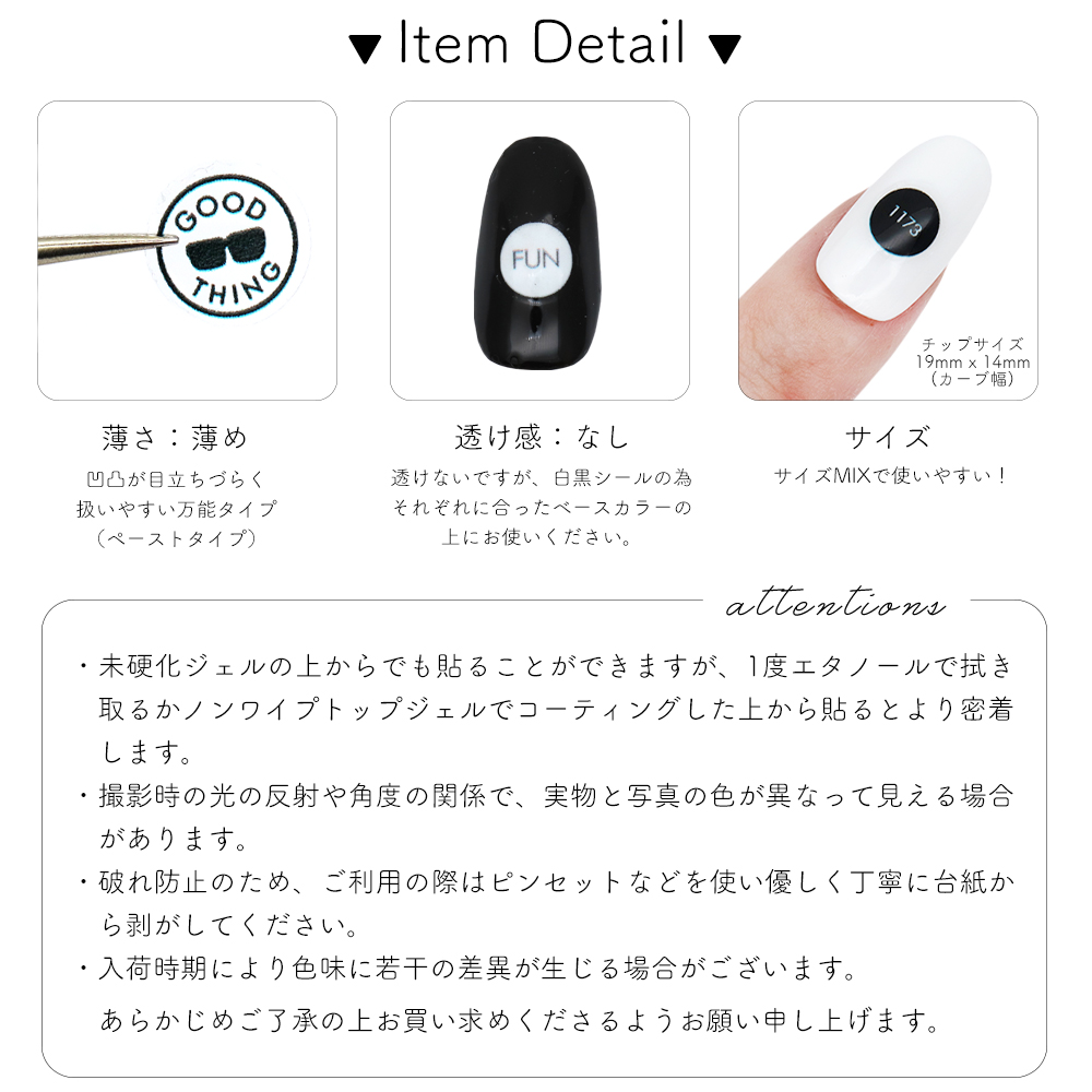 ノンワイプトップジェルでコーティングした上から貼るとより密着します。