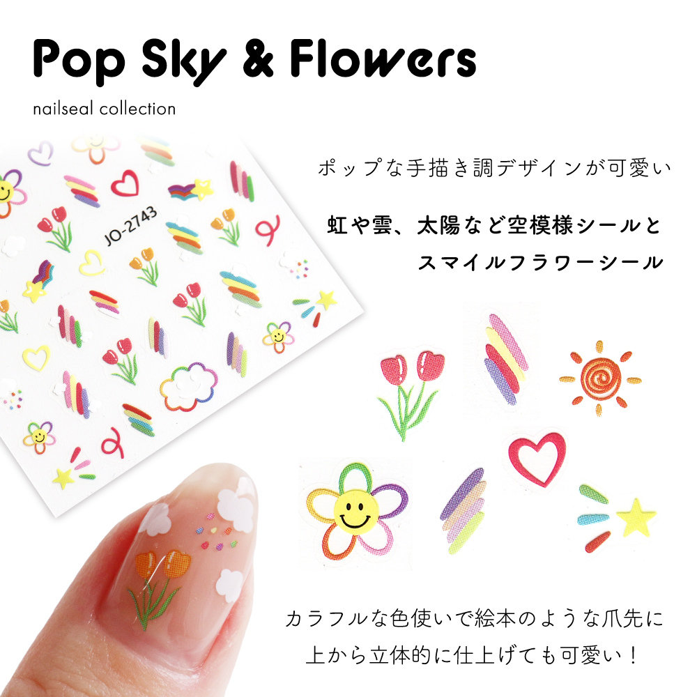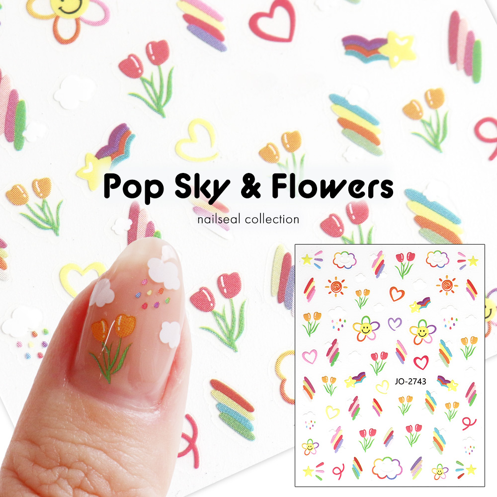 虹や雲、太陽など空模様シールと、スマイルフラワーシール