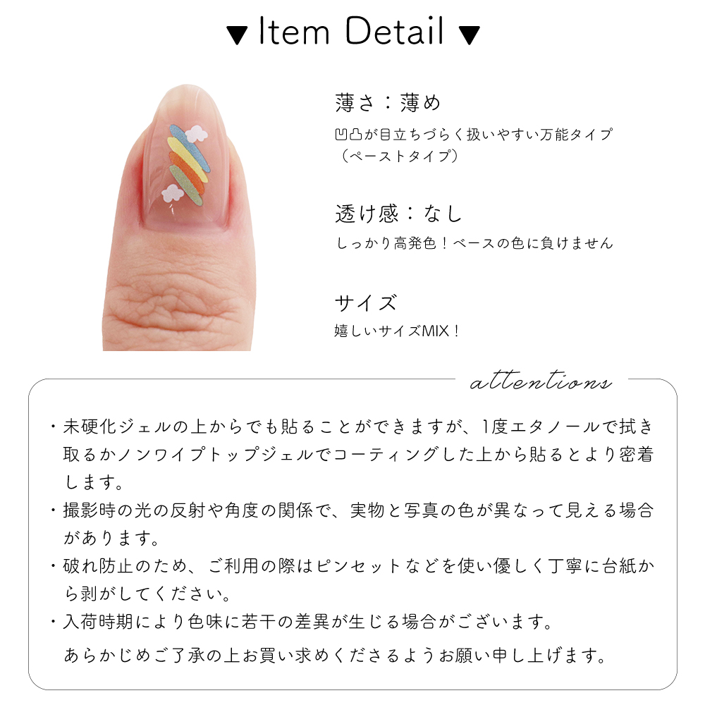 ノンワイプトップジェルでコーティングした上から貼るとより密着します。