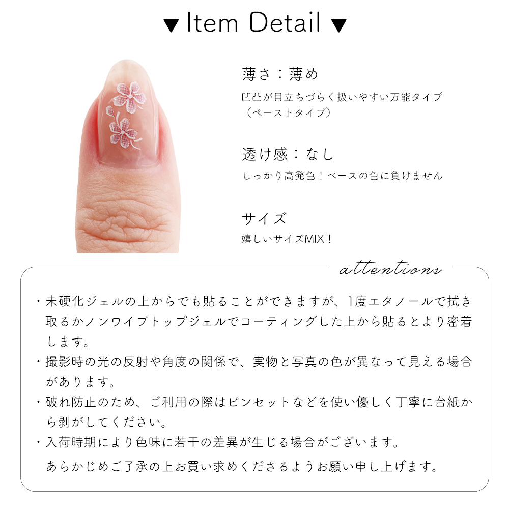 ・破れ防止の為、ご使用の際はピンセットなどを使い優しく丁寧に台紙から剥がして下さい。