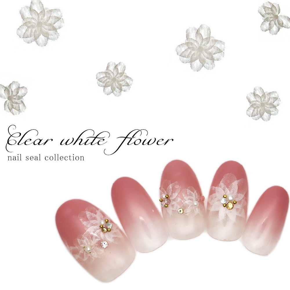透け感が上品な花柄ネイルシール。